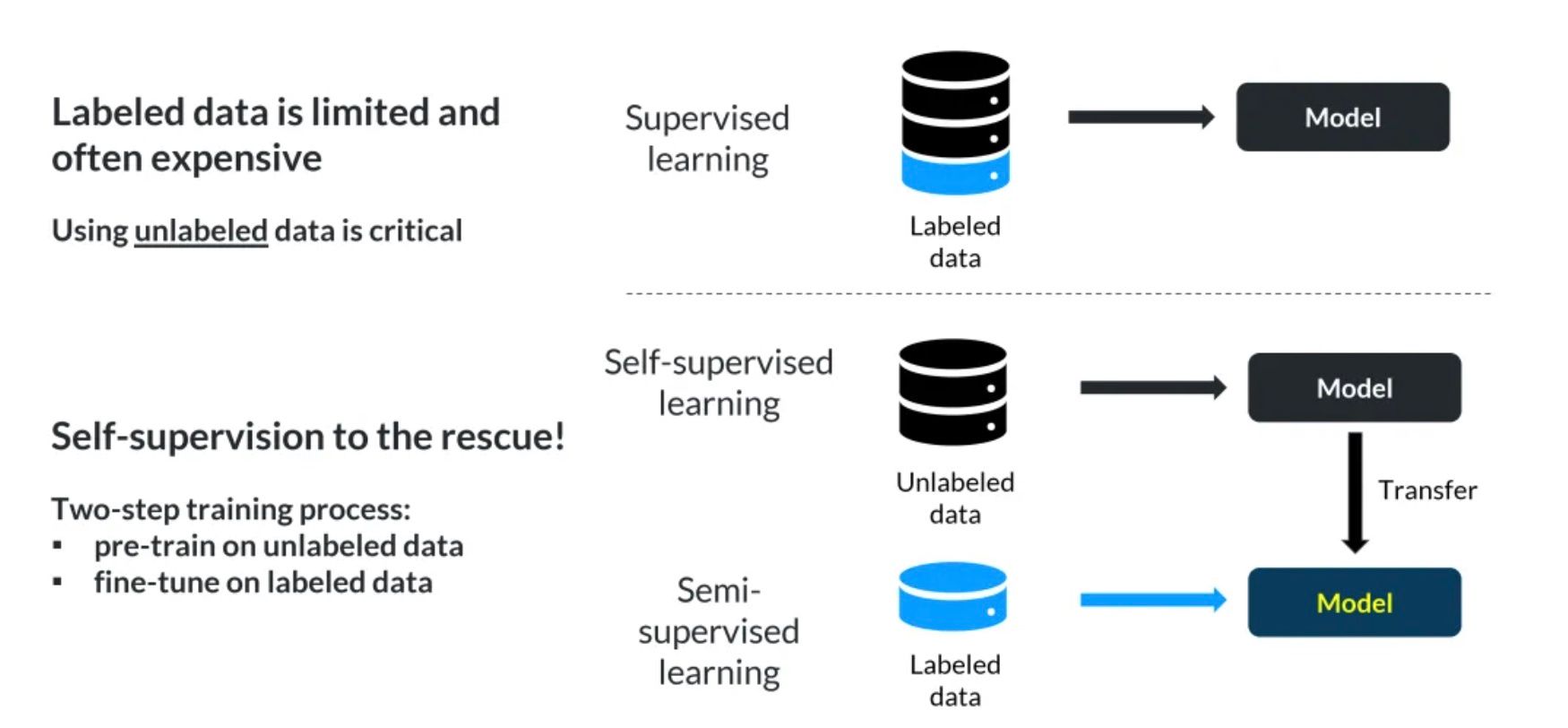 Traditional ML algorithms often rely on labeled data for training, a resource-intensive process that poses challenges in domains where labeled data is scarce. SSL, on the other hand, charts a different course by extracting patterns from unlabeled data, offering a more data-efficient approach to learning.