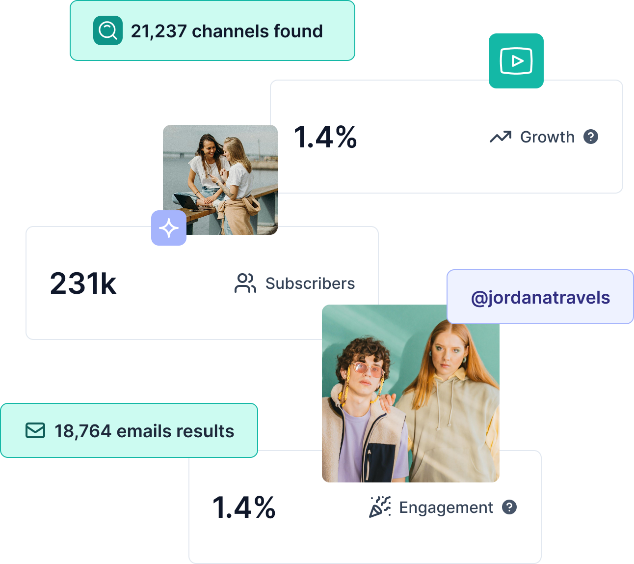 Purchase data and contact info from any search to help you connect with YouTube creators.